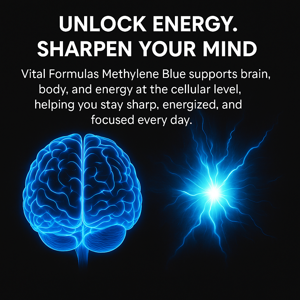 Vital Formulas delivers USP-Grade Methylene Blue to boost brain health, sharpen focus, and sustain energy without crashes helping you go from fog to clarity in 45 days